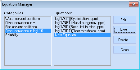 - Create a new custom equation - opens the Edit Equation window (see below)