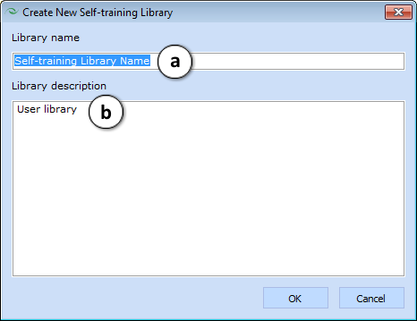 In order to create a new library, click “New Library” in the appropriate Trainable Libraries group. In the Create New Self-training Library window, type in: